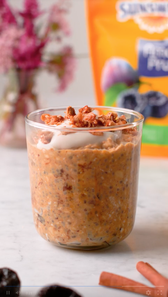 Waking up and knowing this is in your fridge? That’s an absolute day-changer. Whether the leaves are changing or you’re just craving something with immune-boosting pumpkin and gut-healthy prunes, this easy overnight oats recipe is for you.