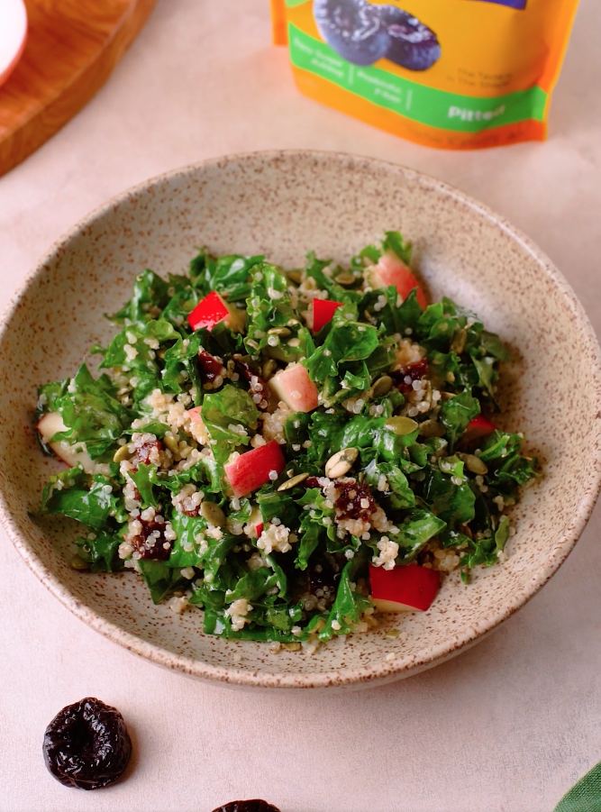 There’s nothing more meal-preppable and satiating than a good quinoa salad. We’ve packed this one with nutrients from the crisp apples to the kale to the always delicious Amaz!n Prunes. We’re not in the business of boring lunches and neither should you.
