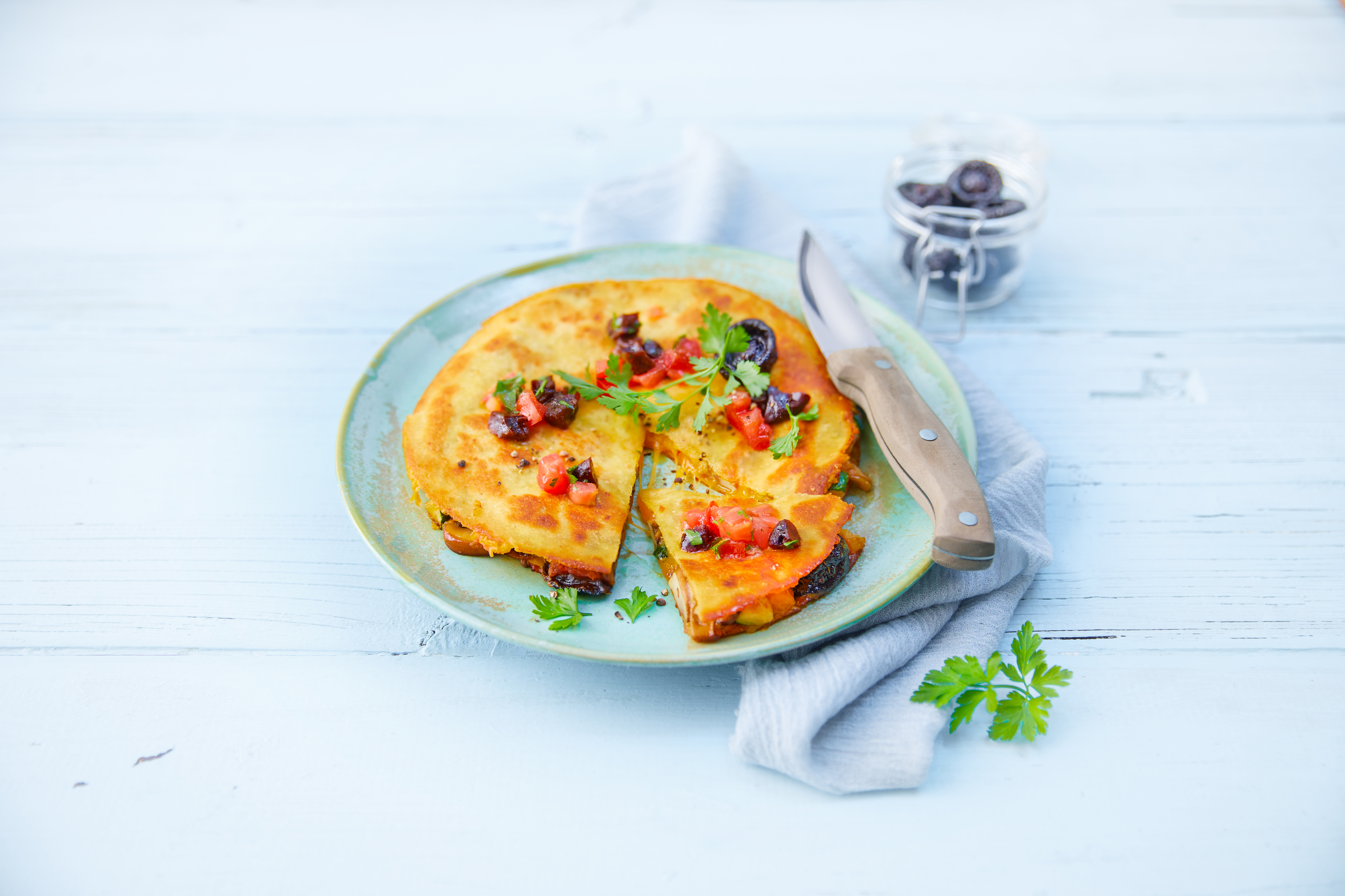 Our quesadillas bring a Mexican twist to your dining table. Filled with melted cheese, veggies, and prunes, they are easy to assemble for a quick yet hearty meal.